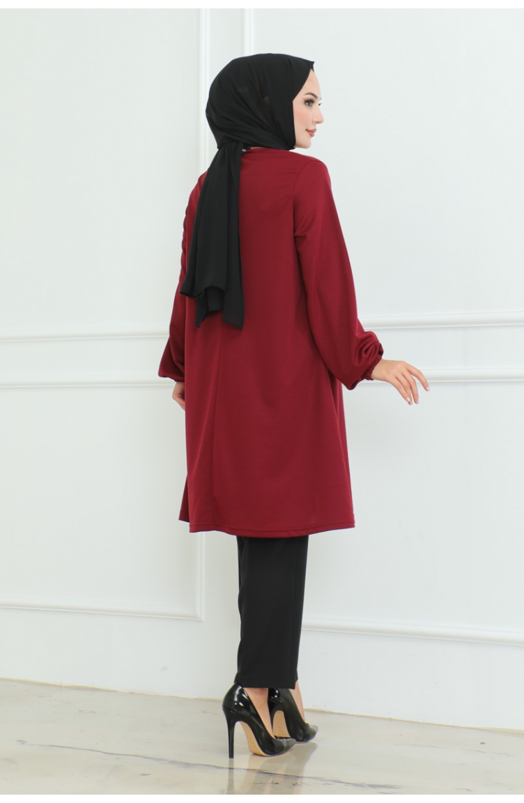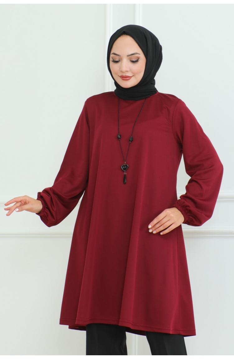 Oversize Krep Tunik 43-02 Bordo